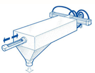 These models are designed as "drop-in" models or as complete discharge hoods. The pelican rests behind the dust seal and out of the material stream when not operating. Drives can be electric, pneumatic or hydraulic.